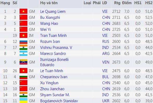 Với thành tích 5 trận thắng, 4 trận hòa Lê Quang Liêm đã giành cúp vô địch với 7 điểm qua đó tích lũy cho mình 8,8 điểm Elo. Xếp thứ 2 và thứ 3 lần lượt là Bu XiangZhi (2.711) và đương kim vô địch Wang Hao (2.683) với cùng 6,5 điểm. Hạt giống số 1 Wei Yi (2.725) chỉ dành hạng 4 khi kém hệ số phụ. Kỳ thủ Trần Tuấn Minh (2.503) xuất sắc vượt qua GM người Czech MiChalik Peter (2.578) ở vòng đấu cuối cùng để vươn lên xếp hạng 5 với 6,5 điểm (kém 3 kỳ thủ Trung Quốc hệ số phụ). Với thành tích này, Trần Tuấn Minh đã đạt chuẩn GM thứ 3 và chính thức trở thành đại kiện tướng quốc tế.
